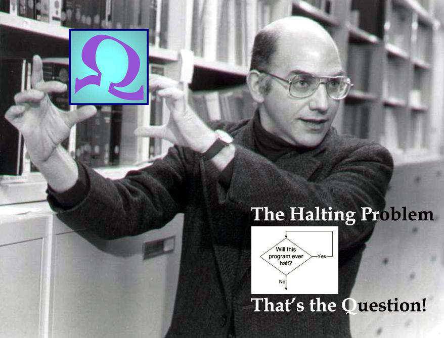 Chaitin gọi số đó là Omega và kết luận: Nếu không thể tiên đoán một chương trình cho trước sẽ dừng hay không thì cũng không thể có một chương trình nào cho phép xác định được các chữ số của Omega – Omega là một số không thể tính được hoặc không thể biết được (unkowable)!