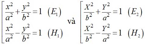 mô tả cùng một Ellipse: phương trình thứ nhất mô tả Ellipse trong hệ tọa độ Oxy, phương trình thứ hai mô tả Ellipse trong hệ OXY, hai hệ có thể biến đổi lẫn nhau sao cho hệ này biến thành hệ kia bằng một phép quay và đổi chiều trục sao cho y thành Xx thành –Y (phép hoán vị vai trò của biến và hàm).