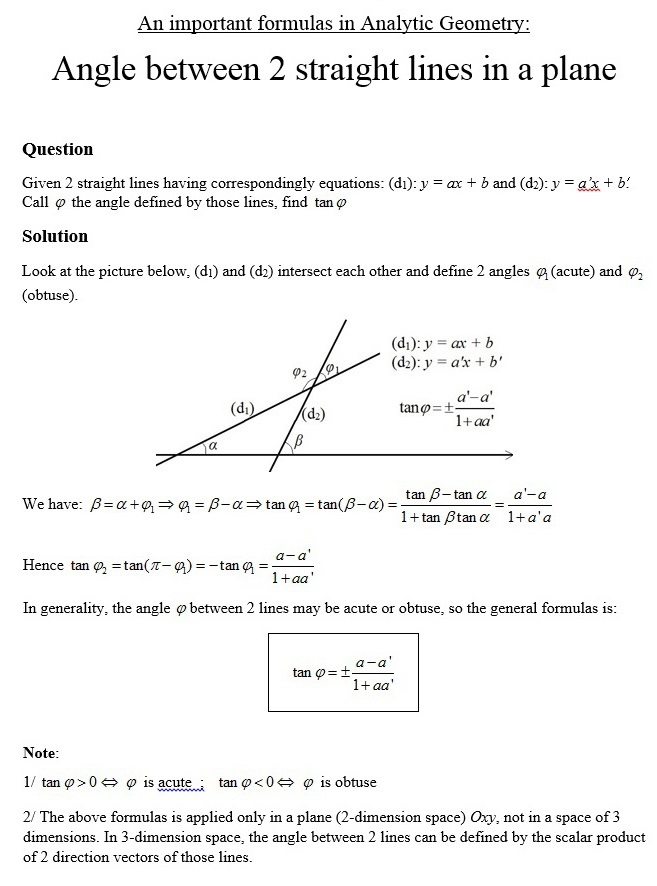 1/ Tiểu luận về góc giữa 2 đường thẳng trong mặt phẳng.