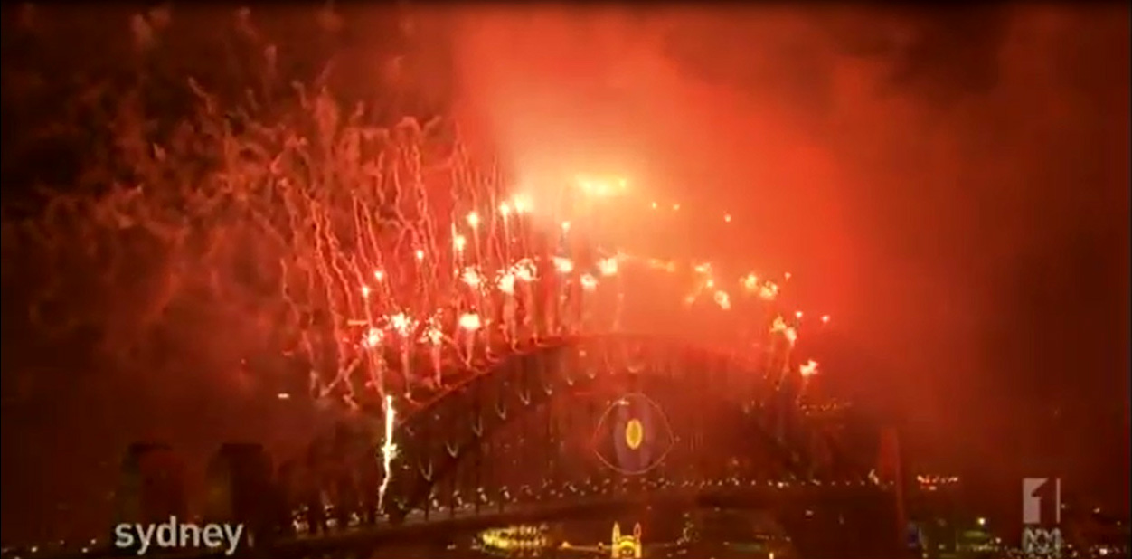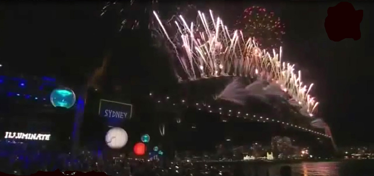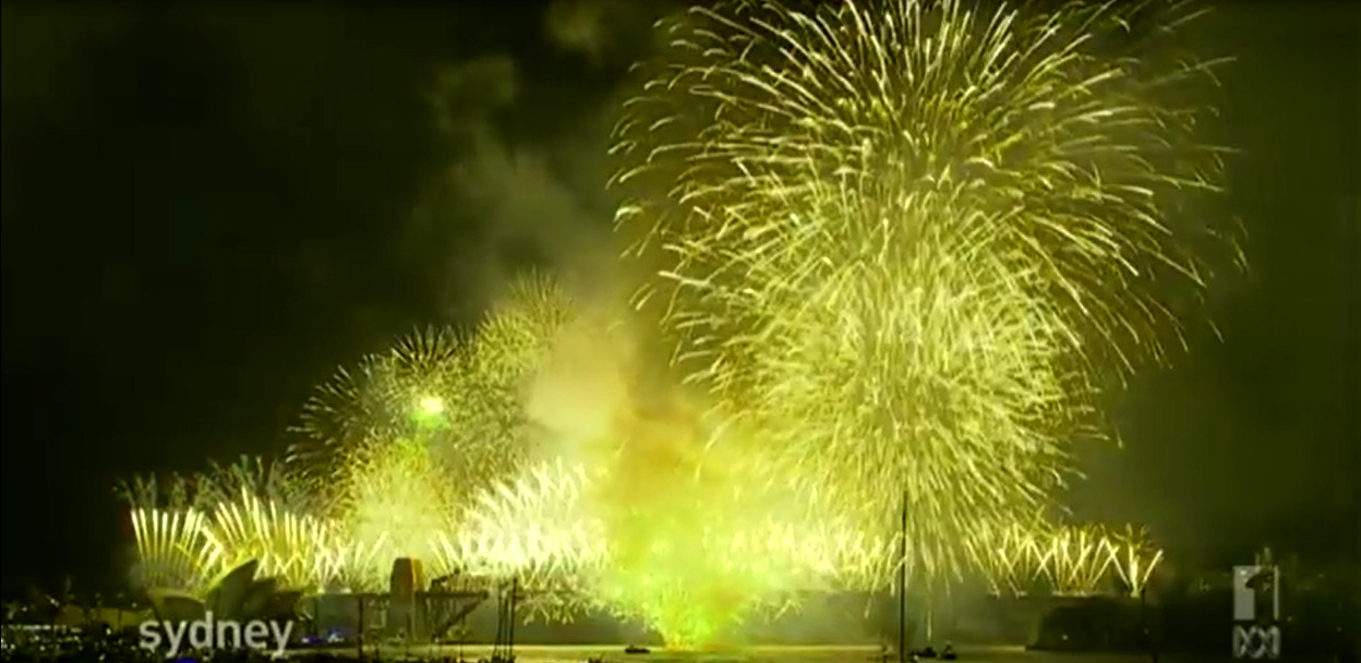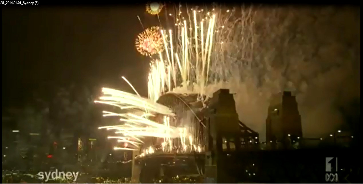 3/ Âm nhạc bên trong Sydney Opera House và Pháo hoa đón Giao thừa (ảnh từ video Giao thừa Sydney 2014 của Đài ABC)