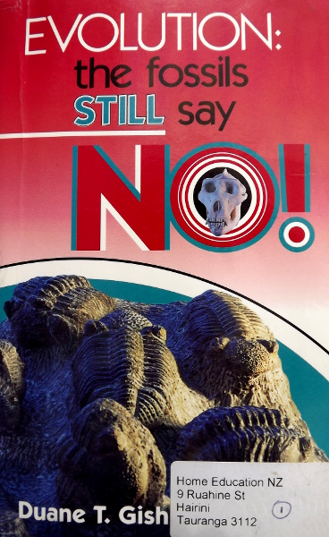 5.evolution_fossils_say_noHình bên: “Evolution: the fossils still say NO!” (Tiến hóa: hóa thạch vẫn nói KHÔNG!)