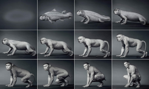 Đó là lý do để các đệ tử của Darwin phải tìm mọi cách lấp đầy khoảng trống tiến hóa từ vượn lên người. Họ dựng lên bức tranh tiến hóa “rất đẹp” từ vượn lên người, rồi cho phổ biến rộng rãi, nhằm tiêm nhiễm vào đầu óc mọi người, đặc biệt là trẻ em, rằng thuyết tiến hóa là một sự thật. Với công nghệ 3D hiện đại, bức tranh tiến hóa được bịa ra bằng những xảo thuật đánh lừa bậc thầy, chẳng hạn như bức tranh sau đây: