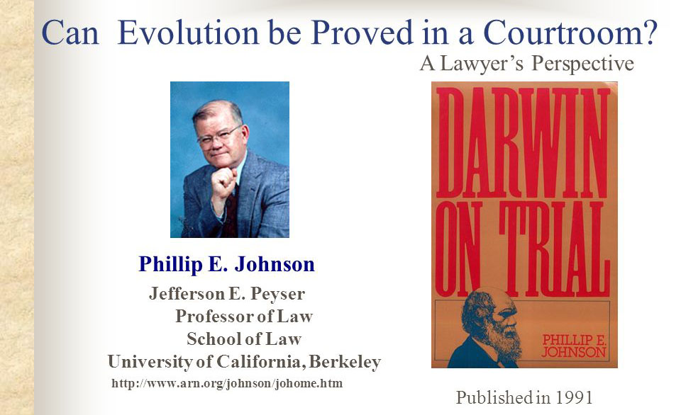 Với sự tiến bộ của khoa học và công nghệ ngày nay, tính ngụy khoa học và phản tự nhiên của thuyết tiến hóa đã lộ ra rõ ràng đến nỗi những người không chuyên ngành về sinh học cũng có thể nhận thấy. Điển hình là trường hợp của Phillip Johnson, một giáo sư luật tại Đại học California ở Berkeley, trở thành một trong những nhà tiên phong trong sự nghiệp giành lại sự thật cho sinh học – tố cáo sự vi phạm luật tự nhiên của học thuyết Darwin. Trong hơn 20 năm qua Johnson liên tiếp cho ra mắt một loạt tác phẩm phê phán thuyết tiến hóa, thậm chí với tư cách một học giả về luật pháp, ông nêu câu hỏi thách thức: “Thuyết tiến hóa có thể chứng minh được tại một phòng xử án hay không?” (Can Evolution be proved in a courtroom?). slide_13