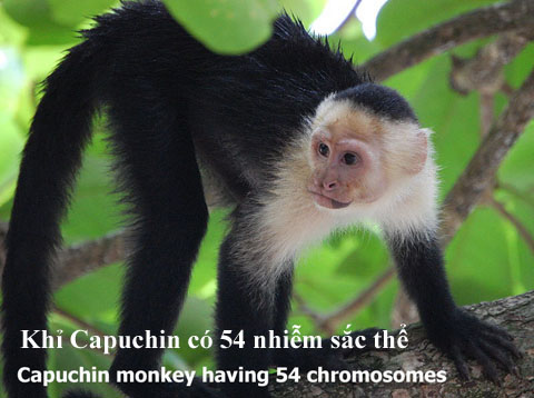 [1]: Thực ra khỉ, vượn có rất nhiều loài khác nhau, với số nhiễm sắc thể khác nhau, và nói chung đều khác với số nhiễm sắc thể của người. Người có 46 nhiễm sắc thể trong khi Khỉ Capuchin có 54 nhiễm sắc thể; Gorilla, Orangutan (đười ươi), Chimpanzee (tinh tinh) có 48 nhiễm sắc thể; Khỉ Rhesus có 42 nhiễm sắc thể;…