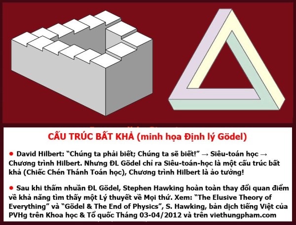 Một, theo Định lý Bất toàn của Kurt Gödel, chúng ta chỉ là một bộ phận của vũ trụ, sự phán xét của chúng ta về vũ trụ không bao giờ đầy đủ. Nói cách khác, sự phán xét của chúng ta về vũ trụ sẽ rơi vào tình trạng Nghịch lý Tự Quy Chiếu (tự mình nói về mình), dẫn tới mâu thuẫn và sai lầm. Cũng theo Định lý Gödel, muốn “nhìn thấy” toàn thể vũ trụ (muốn phán xét đầy đủ về vũ trụ), phải đi ra ngoài vũ trụ? Làm thế nào đi ra ngoài vũ trụ? Đó là một tham vọng BẤT KHẢ (impossible)!