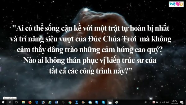 Chúng ta đang sống trong kỷ nguyên khoa học phát triển cao và thật thú vị để nhận thấy khoa học càng phát triển, các nhà khoa học càng thừa nhận vai trò thiết yếu của Nhà thiết kế Vũ trụ, đúng như Lord Kelvin đã nói từ lâu: “Nếu bạn nghiên cứu khoa học đủ sâu và đủ lâu, nó sẽ buộc bạn phải tin vào Chúa”. Nếu ai đó không tin vào Nhà Thiết kế Vũ trụ, đơn giản bởi vì người đó không nghiên cứu khoa học đủ sâu hoặc đủ lâu mà thôi …