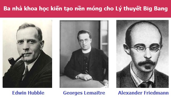 - 1927 Georges Lemaître, một linh mục Công giáo kiêm nhà toán học và vũ trụ học người Bỉ, hoàn toàn độc lập với Friedmann, cũng giải phương trình của Thuyết Tương đối Tổng quát và rút ra nghiệm tương ứng với một vũ trụ giãn nở. Ông đã công bố những khám phá của mình trong một công trình có một cái tên rất dài: “A homogeneous universe of constant mass and increasing radius accounting for the radial velocity of extra-galactic nebulae” (Một vũ trụ thuần nhất có khối lượng không đổi và bán kính tăng lên, giải thích tốc độ xuyên tâm của các thiên hà). Trong đó Lemaître không chỉ chứng minh sự giãn nở của vũ trụ mà còn nêu lên một hệ số mà hai năm sau Edwin Hubble cũng tìm thấy bằng quan sát thiên văn. Đó là cái được gọi là “Định luật Hubble”.