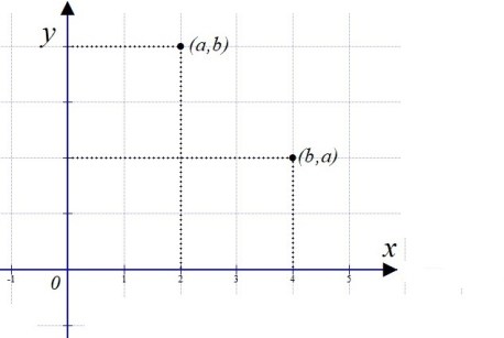 Những bạn không làm toán có thể thấy mệnh đề (O2) có vẻ rắc rối quá, làm mệt óc, nhưng thực ra ý nghĩa thực tế của nó rất đơn giản: Trong hệ trục tọa độ Descartes 2 chiều, nếu hoành độ độ a không bằng tung độ b thì điểm có tọa độ (a,b) sẽ khác biệt với điểm (b,a).
