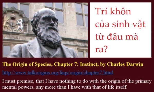 Thật vậy, khả năng “chọn lọc” phải là khả năng của “trí khôn”, nhưng trí khôn từ đâu mà ra? Tại sao sinh vật có trí khôn? Không ai biết. Chính Darwin cũng thú nhận rằng ông không biết. Thật vậy, trong cuốn “Về nguồn gốc các loài” (On the Origin of Species) năm 1859 ông viết: