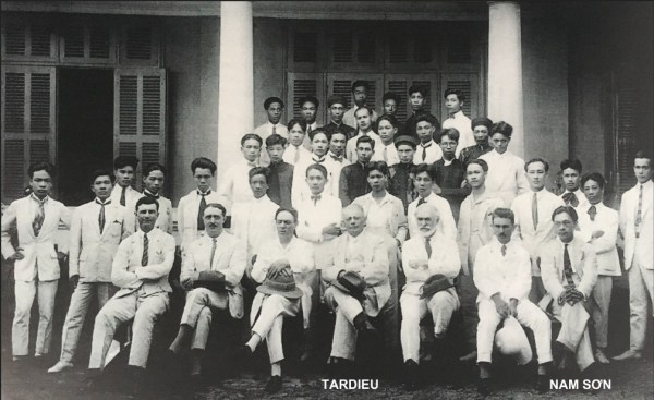 Các giáo sư và sinh viên Trường Cao đẳng Mỹ Thuật Đông Dương – Thập niên 30, Thế kỷ XX (ảnh tư liệu của gia đình KTS Nguyễn Văn Ninh)