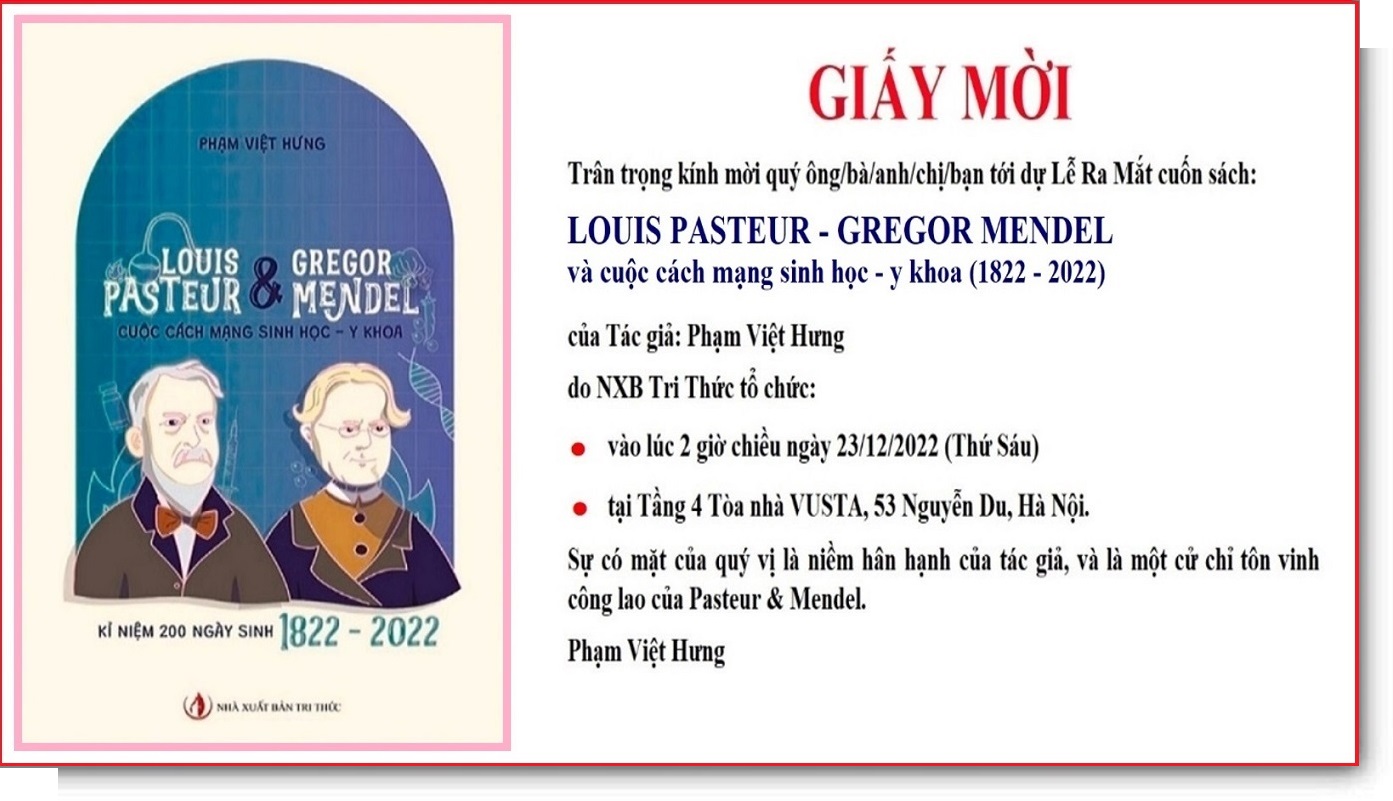 GM Published 16/12/2022 at 1393 × 801 in GIẤY MỜI dự buổi RA MẮT sách “Louis Pasteur – Gregor Mendel”