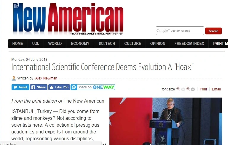 International Scientific Conference in Turkey Deems Evolution A HOAX Published 19/06/2023 at 769 × 489 in Good News on Darwinian Evolution / Tin vui về Thuyết tiến hóa Darwin ← Trước Tiếp theo →