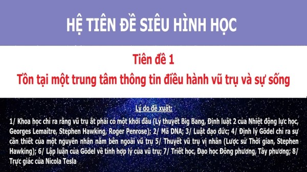 Đây là Tiên đề quan trọng nhất, rút ra từ chính khoa học – chính khoa học cung cấp nhiều thông tin quý báu gợi ý cho chúng ta thấy ắt phải có hệ điều hành của vũ trụ và sự sống. Thật vậy: