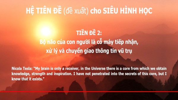 Đó là một trực giác phi thường. Cái “lõi” của vũ trụ mà Tesla nói chính là Trung tâm Thông tin của Vũ trụ. Tuyên bố của Tesla chính là một cách phát biểu khác của Tiên đề 1. Và thật thú vị, tuyên bố ấy chứa đựng Tiên đề 2 sau đây: