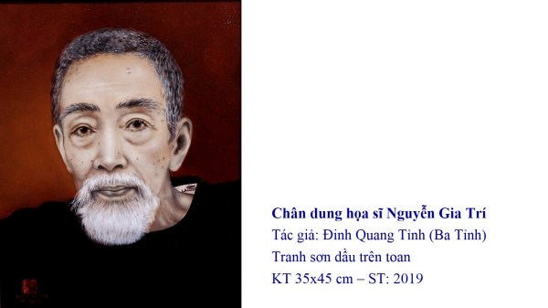 Được biết chân dung Họa sĩ Nguyễn Gia Trí được vẽ qua ảnh chụp, nhưng tôi có cảm tưởng như chân dung này được vẽ trực tiếp khi người mẫu ngồi trước mặt, vì THẦN THÁI của Cụ Trí lộ ra rõ ràng ấn tượng quá. Rất có thể linh hồn Cụ Trí đã nhập vào bức chân dung đó khi ta ngắm nhìn.