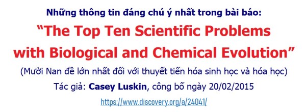 Nếu bạn tranh cãi với những bằng chứng ĐÃ QUÁ RÕ RÀNG ĐÓ thì bạn không còn là khoa học nữa. Lúc ấy bạn trở thành một tín đồ bảo vệ niềm tin của bạn. Bài báo của Casey Luskin chỉ là MỘT trong số rất nhiều thông tin của Sinh học phân tử mà thôi. Bạn hãy đọc kỹ BÀI NÓI CHUYỆN của COLIN PATTERSON đê thấy sự thật sau đây: